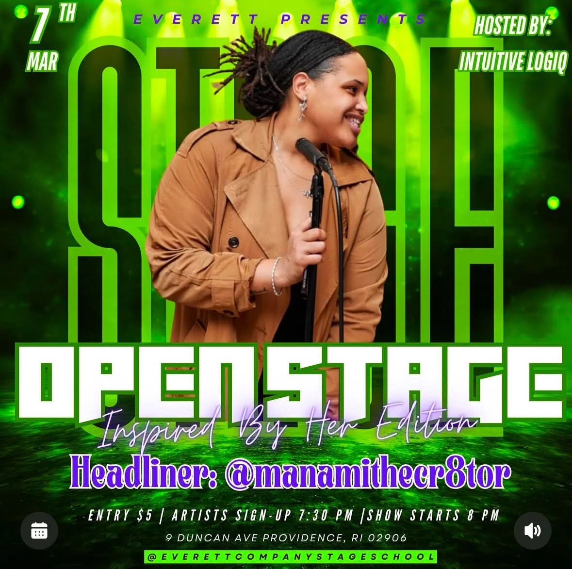 The Host for Open Stage this season will be the one and only Intuitive LogiQ!! Intuitive LogiQ (LogiQ), is a 28 year old woman of Haitian descent who curates and hosts events, amongst a plethora of other skills in the entertainment and professional work field. This has been her career for the past 10 years, but also a dream/aspiration since birth. LogiQ has hosted events in RI, NY, MA, NJ and growing… performance appearances by Lola Brooke, YNJay, Serani +More! She’s also hosted alongside celebrity DJs, such as DJ Chubby Chub, DJ Selecta Bam Bam, DJ Buck, DJ Moe Dee, DJ Craig G +More. “I was LITERALLY born for this" ... LogiQ