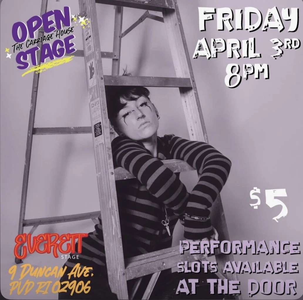 JOIN US Friday April 3rd @8pm! All ages and acts welcome as we gather in community, creativity and love. No pre-registration needed and no one turned away for lack of funds. Just get yourself to 9 Duncan Ave Providence, RI 02906!