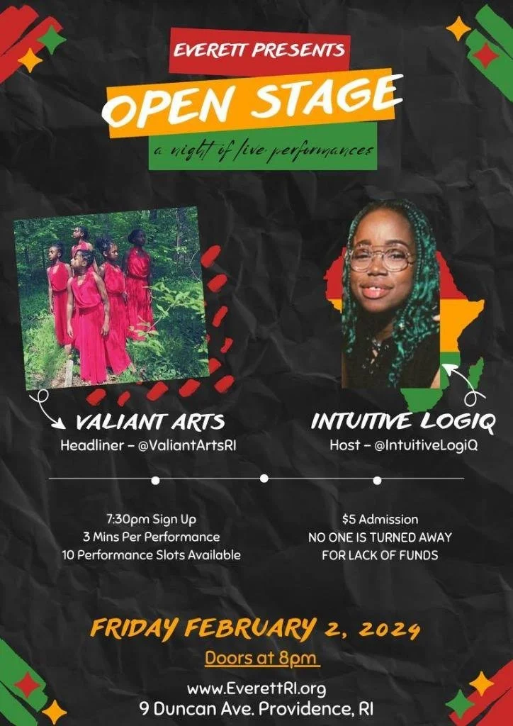 JOIN US to celebrate our communities talent and enjoy some incredible dancing, singing, spoken word, comedy and more! No pre-registration needed, just get yourself to 9 Duncan Ave Providence, RI 02906 on Friday June 6th at 8pm! Show up, bring a friend and let's make some noise!